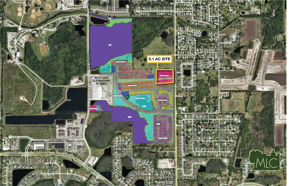 Strategically located within Stevens Plantation, a rapidly growing master-planned community in St. Cloud, Florida, this 5.1-acre neighborhood commercial parcel offers excellent visibility and accessibility. The site is ideally positioned to serve the surrounding residential population and nearby employment hubs, with convenient access to major transportation corridors including Highway 192 and the Florida Turnpike. Stevens Plantation is a popular mixed-use community featuring residential neighborhoods and planned commercial development that supports local daily needs and services. The property is planned for approximately 40,000 sf of commercial space, suitable for retail, office, medical/health services, and neighborhood-oriented uses that will support both residents and the broader St. Cloud market.