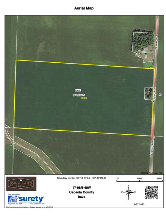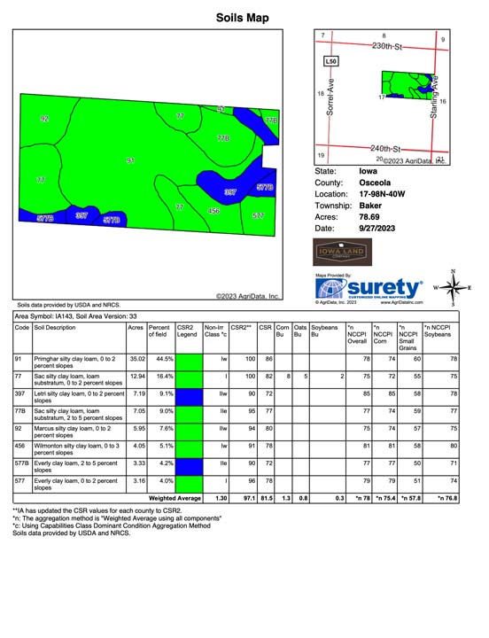 Located in South Central Osceola County, Iowa sits this 79 +/- acres of farmland that is offered for sale via sealed bid! All sealed bids shall be submitted to Land Broker Matt Skinner or Land Broker Luke Skinner by November 17th, 2023 by 3:00pm CST.