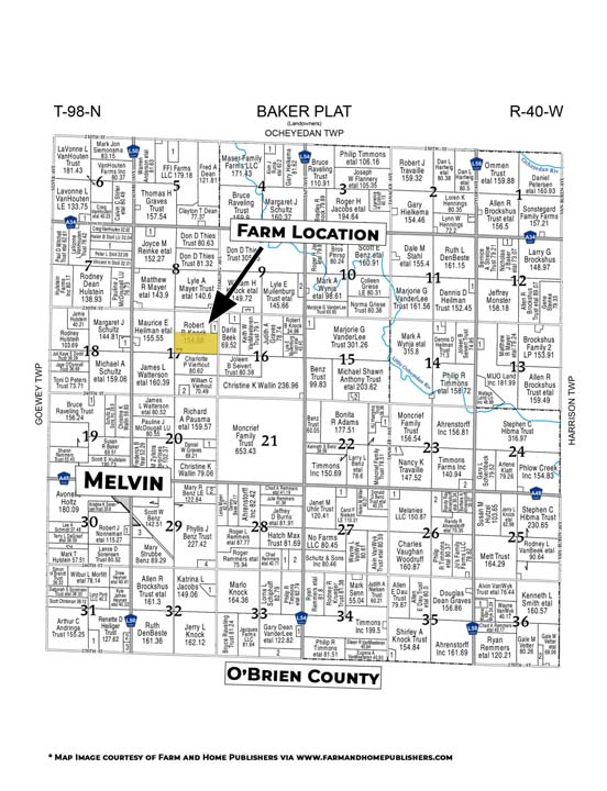 Iowa Land Company is pleased to represent this outstanding farmland offering. The farm is offered for sale as one tract. The farm offers 78.69 estimated FSA cropland acres and the tillable acres carrying an outstanding CSR2 rating of 97.1 and a very strong CSR1 rating of 81.5 . This farm offers good opportunities for local farmers to expand land holdings in an area where land is held in extremely tight ownership. This is the best of the best located right in the heart of black dirt country! A high yielder for many years to come! The farm is located northeast of Melvin, Iowa. Owner of the farm is Shelley Hardie.