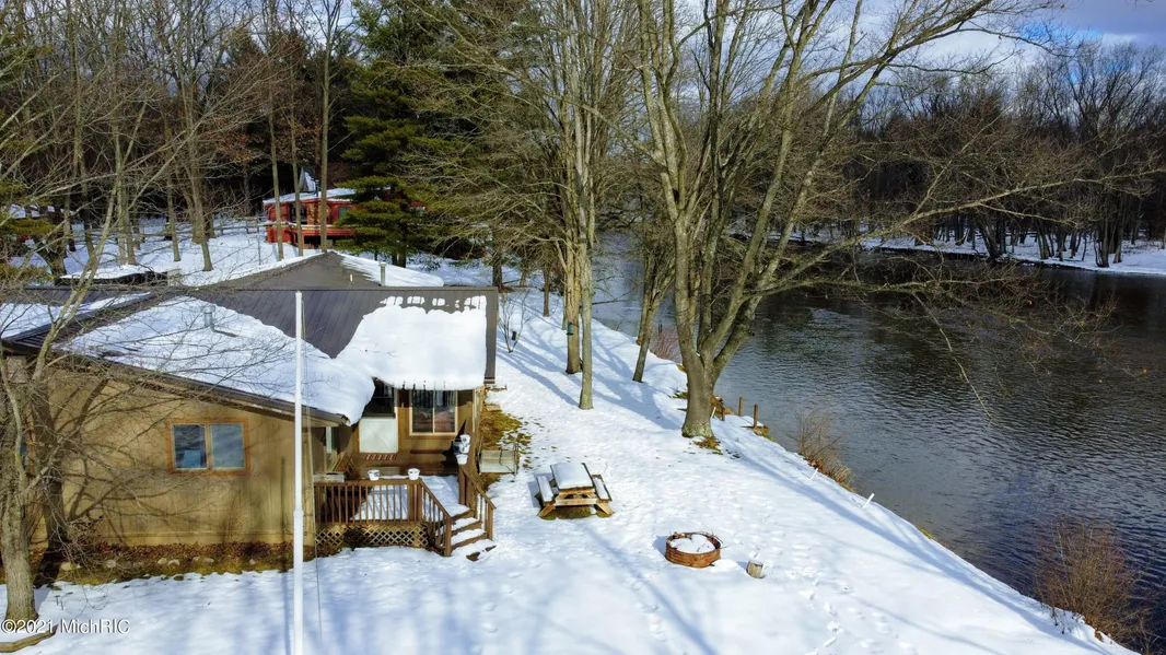 Beautiful Muskegon River frontage with views throughout the kitchen, living, and bedroom! This home features three bedrooms, three Bathrooms, master suite with large walk in closet, living room with fieldstone fireplace and heated 3 seasons room all over looking the river, cedar tongue and groove ceilings, newer metal roof, air conditioning, 2 year old furnace, central vac, heated two stall attached garage. If that wasnt enough home sits on almost 3 acres with a 24x43 pole barn and a paved circle driveway.'