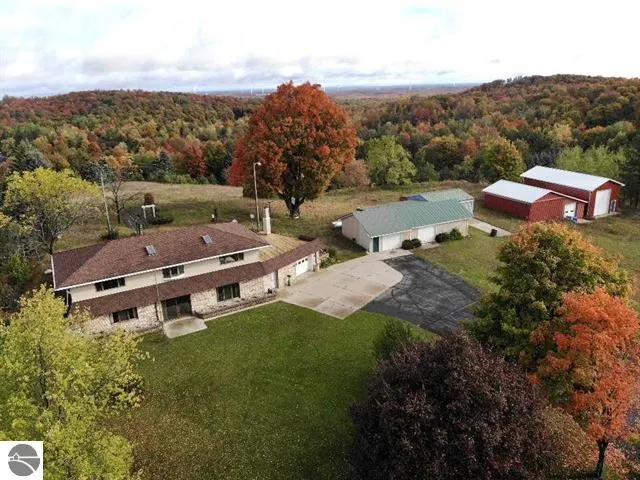 WOW!! This Amazing home sets on one of the highest points in lower Michigan! One of a kind 2bd/2.5bth with over 2400 finished sqft!Lots of potential to add several more bedrooms if needed. Also includes 5 large pole buildings plus an attached garage! All this sets on90 acres of rolling hills and beautiful hardwoods! This is a rare find and a must see!! Only a few minutes from Cadillac!