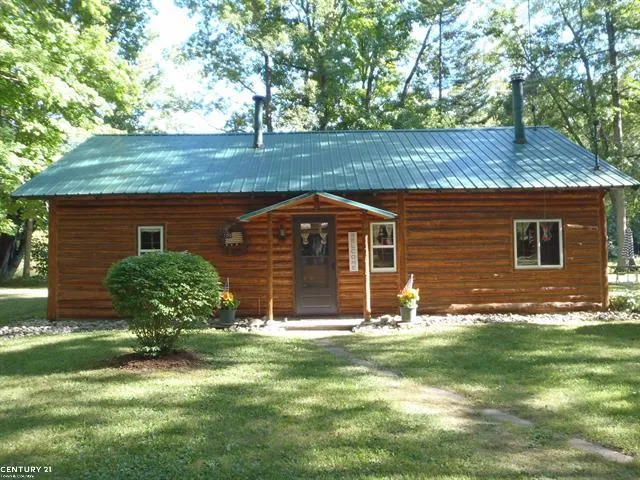 Unique log cabin on the Muskegon River on a 1 acre private lot. Highly desirable location on the Muskegon River with over 203ft of river frontage. In the summer, it has a sandy beach that allows easy access to the river for canoes, kayaks, tubing, swimming, fishing and a bonfire. The cabin is 2 bedrooms,1 bath and 2 lofts. One loft is 14x23 and fits 2 queen beds with 1 full bed and 1 twin bed comfortably. The second loft is 8x14. It also features a 2 car garage and separate 4x8 wood shed for additional storage. A steel 50 year roof in 2015. Has a spring fed artesian well. Exterior cabin stained and sealed in 2021. Interior cabin logs refinished in 2021. Refrigerator, microwave and oven/range. Most furniture and housewares are include with a 17ft canoe, 7ft kayak, BBQ, and air compressor. Agent is related to seller.