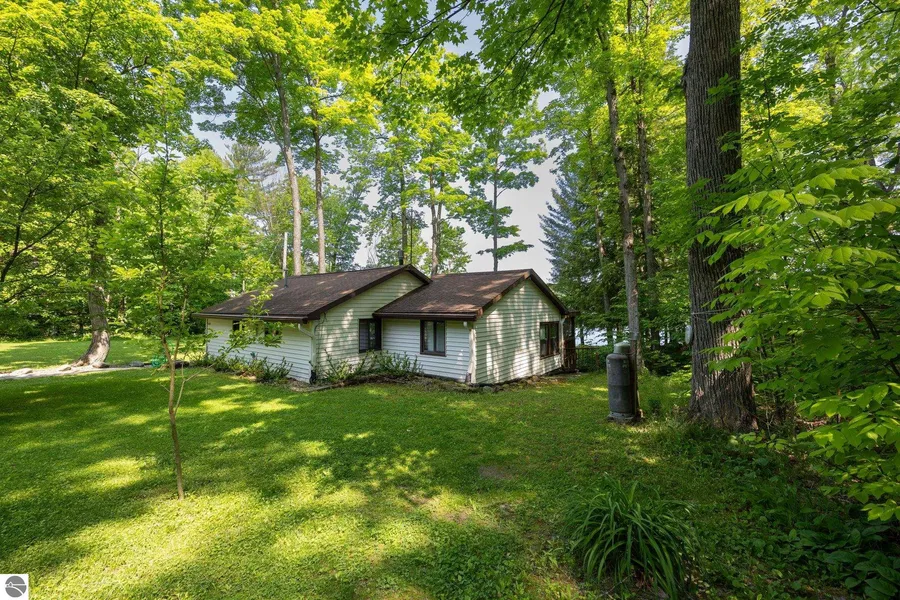 Waterfront cottage in a peaceful wooded setting. This 2-bedroom, 1-bath is a great home for family gatherings, weekend getaways or a full-time residence. There are extra sleeping spaces to accommodate guests. The 2-car garage has a workbench area and storage space. The pole building can house the RV, boat and all the lake toys. Generous lot space with 2 lakefront lots and two back lots. There is a private dock for your boat and a welcoming beach area along with a firepit. Wells Lake is an all-sports lake perfect for fishing, boating, and outdoor fun, offering opportunities to connect with nature. You will love relaxing in the gazebo, or setting out for fishing, this home is you gateway to beauty and serenity of the outdoors.