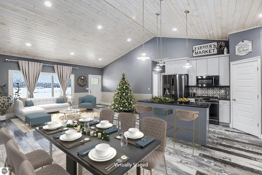 Imagine your Holidays in your new home! This home is move in ready. Ready to make dreams come true for the new year! Modern Ranch Home on 2 Acres, Near Cadillac, MI. Move-In Ready Country Retreat. Built in 2018. Energy Efficient and Peaceful Setting. Discover this stunning 3 bedroom, 2 bath modern ranch on 2 beautiful acres in Highland Township (Tustin) offering the perfect blend of Up North serenity and modern comfort, just minutes from Cadillac and area lakes, trails, and recreation. Step into a bright, open kitchen with center island, stainless appliances, walk-in pantry, and plenty of storage. The perfect place to gather with family and friends. The home’s efficient radiant in-floor heat runs throughout the house and attached garage, keeping every space warm and inviting year-round. Built in 2018, this move-in ready home features tinted windows, premium insulation, and a durable metal roof for low-maintenance living. The covered front porch with recessed lighting is ideal for enjoying morning coffee, hummingbirds, and peaceful sunsets. The spacious primary suite offers a walk-in closet, private bath with soaking tub and shower, and fresh paint. Additional highlights include a convenient laundry area with sink, a large storage shed with loft, and expanded concrete parking. The property is also prepped for a mini-split A/C system if desired. Located at the end of a quiet road, this property provides privacy, wildlife, and beautiful views. The ultimate Up North Michigan lifestyle. Watch deer graze in your backwoods, garden in your open backyard, or simply unwind in complete peace.