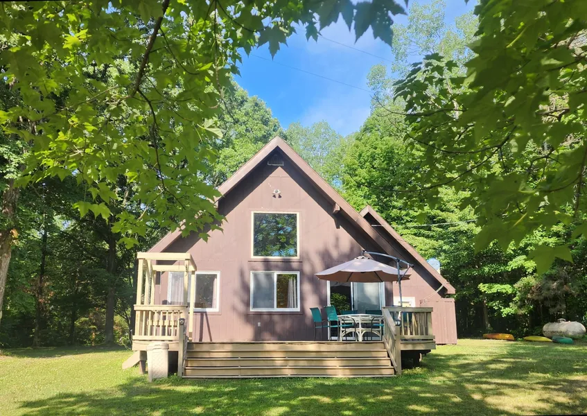 Escape to your turn-key private riverside retreat with this spacious and fully furnished 4-bedroom, 2-bathroom home, ideal for large gatherings, group getaways, or income-producing vacation rentals. Nestled on 220 feet of serene riverfront, this turnkey property offers modern comfort, rustic charm, and plenty of room to relax and play. Step inside to find a warm, welcoming space that accommodates everyone -- the bunk room alone sleeps 12, and the entire home comfortably accommodates up to 18 guests. An RV hookup on site makes it easy for camper friends to join in the fun. The bunk room bathroom makes the space even more functional for guests.
