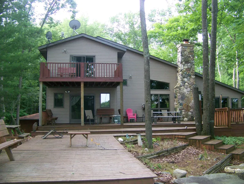 Opportunity to own your own slice of heaven. Large 5- 6 bedroom 3 bath fully furnished home with just over 10 acres is waiting for you! This unique property is surrounded by the Pere Marquette Forest and fronts on peaceful Strawberry Lake which is a 60 acre, deep water lake. This property is ample enough for those large family reunions. There will always be things to enjoy regardless the season whether its watching the loons,fishing, or hunting morels in the Spring. Enjoying the lake and campfires in the summer; color tours and hunting in the fall, or snowmobiling,cross country skiing and ice fishing in the Winter this property offers it all! Property is currently being used as a vacation rental with a solid rental history. Great investment opportunity!