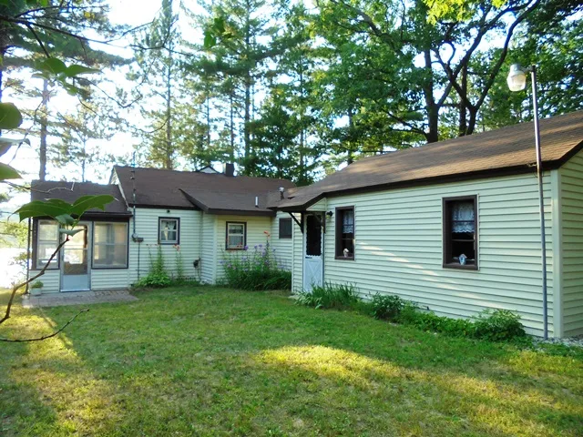 50' waterfront on Perry Lake. Home with "up north" feel has open floor plan, beautiful view from living, fireplace with insert, some knotty pine, three season sun room (giving additional 102 sq ft), utility/mudroom with storage, foundation slab/crawl, attached garage, storage shed. Deck at waterside. Floating dock. Year round living or seasonal cottage.