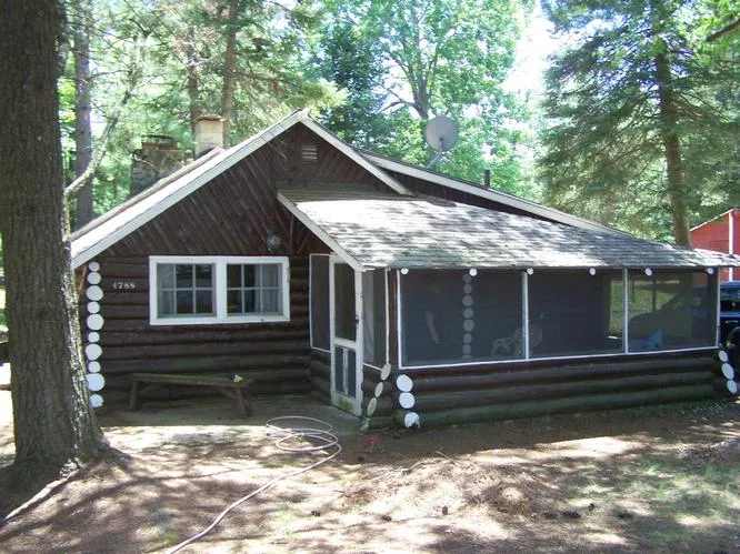 LOG CABIN IN MCKINLEY- 2 bedroom, 1 bathroom authentic log cabin. Cathedral ceilings in living room, with pole rafters and rustic “up-north” charm. Stone fireplace great for chilly nights and a screen porch for warm summer nights. Heated garage and 12 x 20 bunkhouse for extra guests. BORDERING FEDERAL LAND and just a short walk to the AuSable River for canoeing, fishing, and swimming. A-2208 $ 47,900
