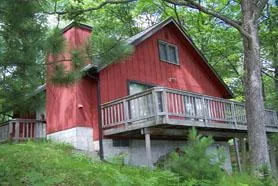 LAKEFRONT CHALET – 90 ft of frontage on Crooked Lake near Curran Michigan, 3 bedroom 1 bath, with full walkout basement, wood burning Stone Fireplace, Deck down by the water, and a nice deck off the living rm, can be heated with LP Gas forced air or a separate wood stove, great wooded location with large 24 x 32 detached garage. $ 145,000 D-323