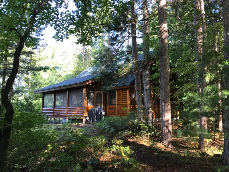 LOOKING FOR THAT LOG CABIN IN THE WOODS? HERE IT IS, A 2 BED, 1 BATH, SCREENED PORCH, WITH WELCOMING INTERIOR LOADED WITH ANTIQUES IN EVERY ROOM! THIS IS A UNIQUE PROPERTY AS IT HAS 100' ON TEE LAKE BUT TO GET THERE, YOU WALK A PERMANENT DOCK THROUGH A BIRD AND WILDLIFE PARADISE WHICH ALSO CROSSES THE TEE LAKE WATERSHED. BEAUTIFUL TREES AND BUSHES FOR WILDLIFE TO HANG OUT IN & FOR YOU TO ENJOY. LARGE GARAGE AND SHED TO STORE YOUR TOYS! A SHORT WALK AWAY LEADS TO A PRIVATE TEE LAKE SHORES PARK WITH YOUR OWN DOCK TO KEEP YOUR PONTOON, ALSO COMES WITH KAYAKS & A ROWBOAT, AND A SANDY BEACH FOR SWIMMING! LOTS OF PRIVACY AS IT IS ON 3.2 ACRES! NATURAL GAS BBQ FOR GRILLING, & RELAX BY THE BONFIRE PIT ANYTIME! THIS IS ENROLLED IN THE VRBO & BRINGS IN A GOOD INCOME FOR SUMMER. PERFECT UP NORTH PLACE!