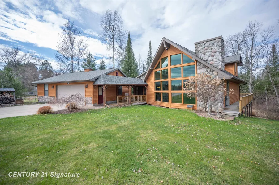 Stunning custom log home on the Mio Dam Pond is ready to enjoy! Walking into the grand entryway you will love the herringbone brick perfectly meeting the custom built-ins. This home has spectacular views of the Mio Dam Pond, 2.5 acres, a 28x32 heated garage, a separate storage barn, and a private dock shared w/only 1 neighbor. You'll find local Amish hand crafted knotty Alder cabinets, a tiled glass backsplash, stainless appliances, and granite countertops in the kitchen. The gorgeous main bedroom 1 of 3, has a lighted trayed ceiling, heated tile floors in the on-suite bathroom, and a walk in closet and vanity. The 2nd floor on-suite has a reading nook, a jetted tub, with a new bathroom floor, a walk in closet & a private deck overlooking the peaceful back yard landscape that hosts a babbling brook and the room even overlooks the lake. There's a multitude of custom carpentry throughout this home, heated tile and wood flooring, floor to ceiling windows, a new furnace and even heated towel bars, and a wrap around deck. This beautiful home offers a walkout from the finished basement that offers a covered patio that spans the width of the home where you'll also find the new whole home generator.