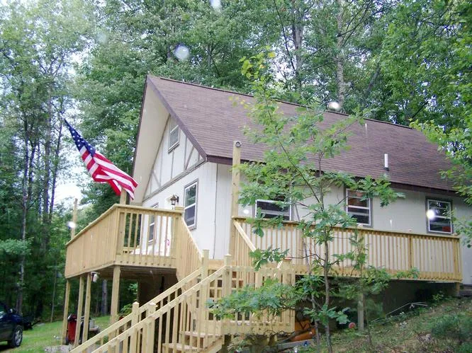 LAKE ACCESS & ACRES- This home has 3 bedrooms, a basement with workshop area and is sitting on 3 wooded and private acres. There are two Lake Access sites just down the private drive and trails on property. Newly remodeled kitchen, flooring and beautiful decking. Great Price. A-2232 $89,000