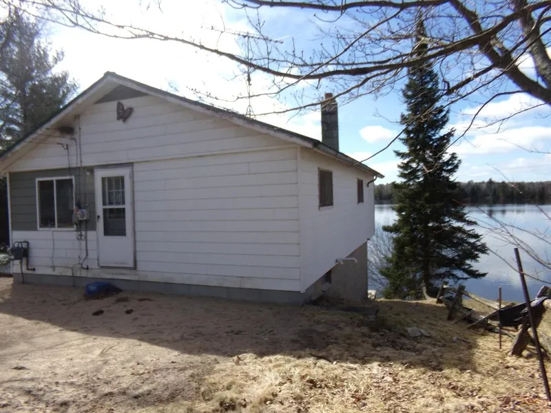 ON THE MIO POND- Mio, Spectacular view with 35 ft of water frontage on the backwaters of the AuSable, 2 bed , 1 Ba Knotty pine cabin, with full walkout basement, NG & wood combination forced air heat, detached Garage, needs repairs $ 34,900 D-382