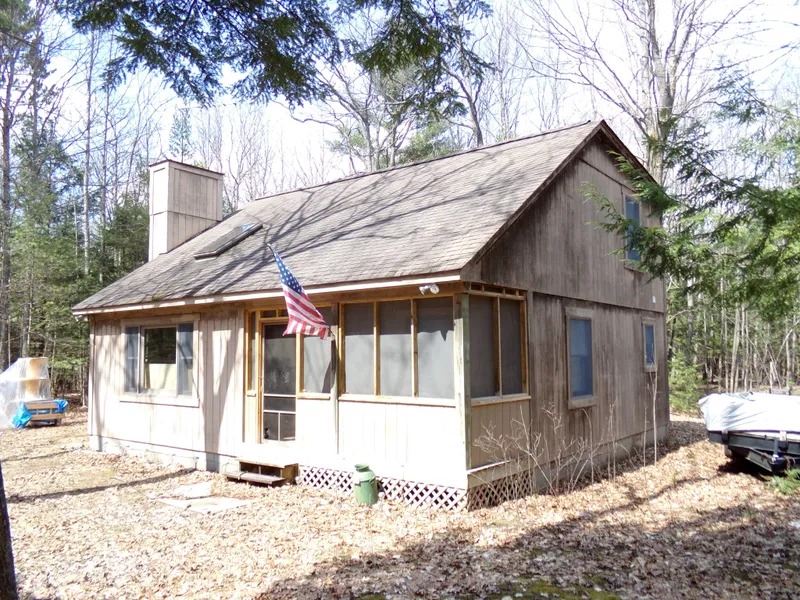 CABIN ON 5 ACRES- Luzerne area, 3 bedroom, 2 bath home or cabin with a great open layout and large rooms. Skylight, cathedral ceiling, recessed lighting are some of its features. The cabin comes furnished including range and refrigerator. The cabin is need of finishing including floor coverings, wall covering, fixtures and doors. Cabin is insulated and wired with electric. Lots of potential, all sitting on five secluded wooded acres. Storage shed on property is also wired with electric. A-2590 $ 59,900