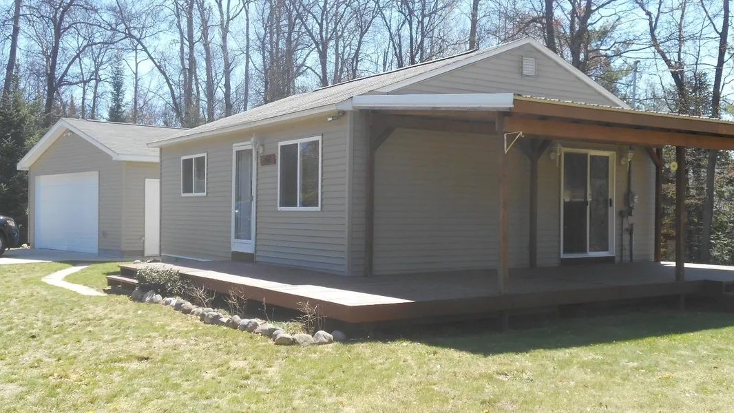 NEAT AND CLEAN & CLOSE TO THE FAMOUS AUSABLE RIVER This 2 bedroom 1 bath cottage is ready for a new owner. Plenty of cabinets and storage for everyone. Includes a large covered deck a newer guest cottage, wired for electric, a newer 12x16 gambrel outbuilding and a wood shed. Also includes a 2+car garage and a newer 5 inch well. A-2595 $50,400