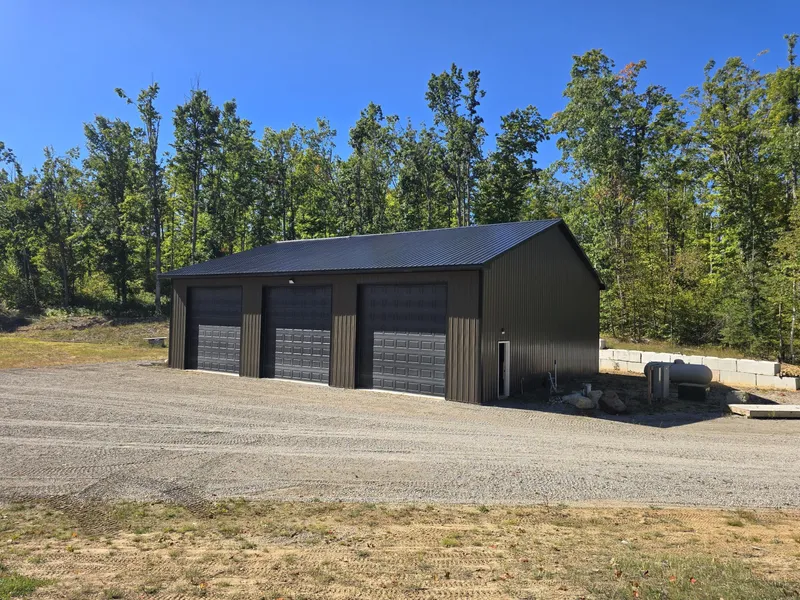 160+/-Acre mostly wooded parcel that borders state land to the north. Includes a 50'x60' pole building that is spray-foam insulated with 14ft overhead doors. also features a 5-inch well,400amp underground electric service , a RV hookup and an elevated, cleared building site ready for construction. The land features large, mature timber with trails throughout. Gated access with a long limestone driveway. ***All information herein is deemed accurate but is not warranted.***