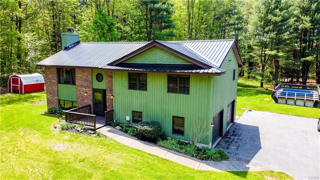 Peaceful Country Living in this Beautifully maintained Raised Ranch situated on 15.49 Acres! The Master Bedroom has a private bath, the 2 additional Bedrooms are spacious as well. Updates include a newer roof, H20 tank, flooring, kitchen appliances, basement bath. There is a pellet stove to heat the garage, a wood stove and Wood Fireplace. Step out from the dining area onto a large deck with privacy and all space you need! Just MOVE In and ENJOY!