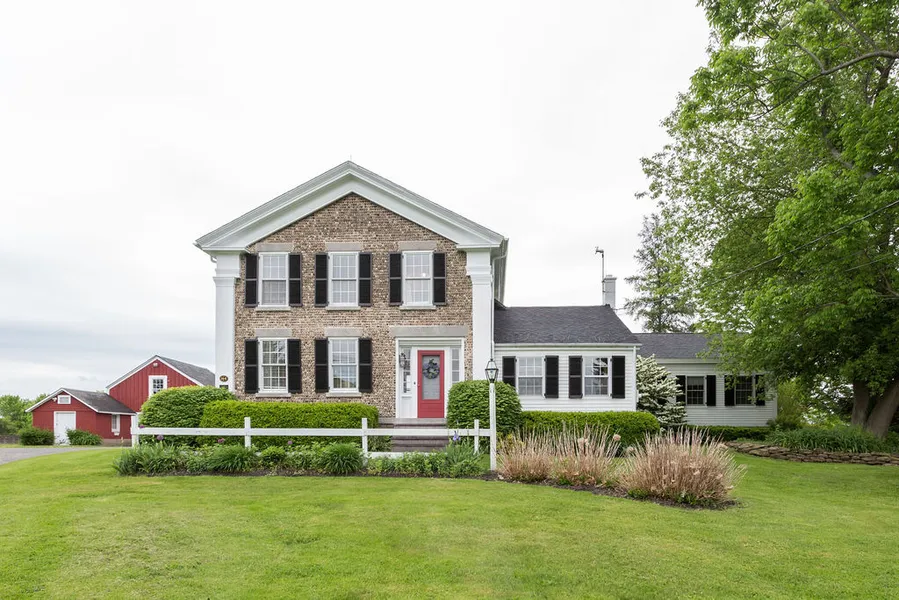 EXPECT TO BE IMPRESSED BY THIS GREEK REVIVAL COBBLESTONE HOME OFFERING AN AMAZING COUNTRY SETTING INCLUDING 15.8 ACRES OF LAND WITH STATELY APPEAL! CURRENT OWNERS HAVE TAKEN PRESTINE PRIDE IN THEIR HOME FOR MANY YEARS WHICH CLEARLY SHOWS BOTH INSIDE AND OUT. AS YOU ENTER YOU WILL ENJOY THE BREAKFAST ROOM WITH VAULTED CEILING THAT OFFERS PLENTY OF NATURAL LIGHT WITH A SLIDING DOOR LEADING TO THE BACK MAINTENANCE FREE DECK....THERE IS A SPACIOUS 1ST FLOOR LAUNDRY WITH A CONVENIENT "DOGGIE SHOWER"....THE SPACIOUS MASTER BEDROOM SUITE OFFERS A CUSTOM WALK-IN CLOSET, A SPACIOUS BATH WITH JACUZZI AIR TUB, MARBLE COUNTERS AND A CERAMIC TILED SHOWER....ALSO, IN-FLOOR RADIANT HEAT IN THIS AREA TO ASSURE COMFORT. THE KITCHEN OFFERS WOOD MODE CABINETRY, GRANITE COUNTERS, UNDER CABINET LIGHTING, MARBLE TILE BACKSPLASH AND STAINLESS APPLIANCES. THERE IS A FAMILY ROOM WITH A TASTEFUL STONE ACCENT WALL...