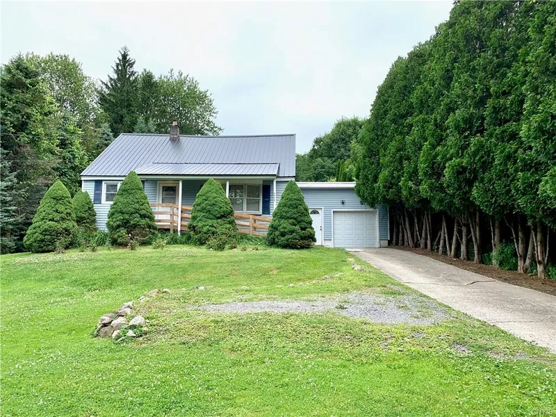 This Cape Cod home is located just moments from the City of Oswego and less than 30 minutes from Syracuse. With two bedrooms on the first floor and upstairs two bedrooms. Need to work from home - easily convert one of the bedrooms into home office Each floor features full bathroom, first floor bathroom was remodel and is handicapped accessible. The Eat-In kitchen with breakfast bar is very modern with newer appliances and plenty storage with updated Hickory cabinets. The living room is great size for all your furniture and over-sized picture window to give you plenty of natural light, under the carpet is hardwood floors. The house is maintenance free with newer vinyl siding, metal roof , vinyl windows, furnace and hot water tank. Don't forget this property features approximate 1 acre of land with 75 feet of river frontage to the Oswego River. Don't forget the Three Season room right off the kitchen -great to sit and relax on those hot summer nights. In the back yard is patio area great for entertaining. Full basement with plenty of storage with the washer and dryer hook-ups. One car garage with garage opener and concrete driveway with turn around.