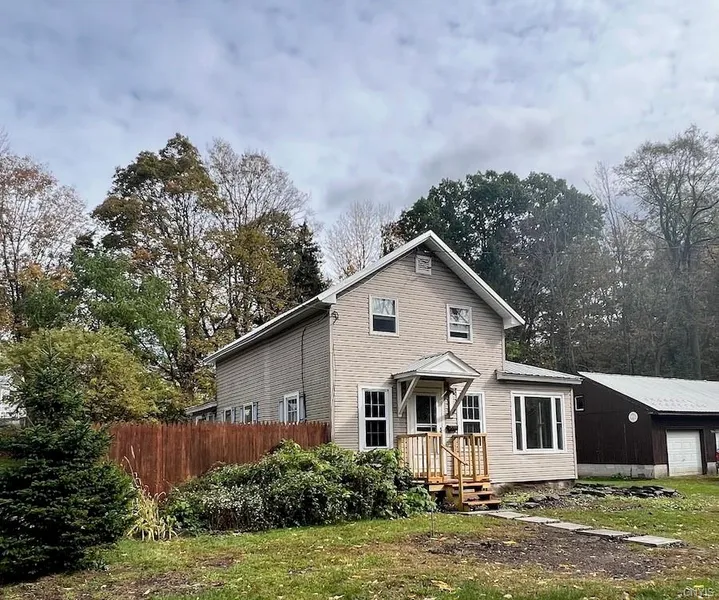 Fall is here and so is this wonderful house for sale. Located on a dead end road in the Village of Pulaski and across the street from the famous Salmon River, you will find 49 Forest Drive. This 2 story, 3BR, 1BA old style home boasts a brand new kitchen with stainless steel appliances. Enter this home through the spacious mudroom that is big enough for all of your shoes and coats. New flooring and LED lighting through out and updated bathroom with new tub/shower and vanity. The upstairs bedrooms both have plenty of built in storage space. There is an exterior entrance to the dry basement with tall ceilings. The 3 car detached garage has space for a workshop. This property is wonderful for outdoor entertaining. Walking distance to the village amenities but without the feeling of being in the hustle and bustle of village living.