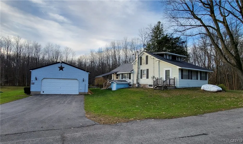 Welcome Home! Escape to the tranquility of country living with this three-bedroom farmhouse style home nestled on an acre of lush greenery. The home features a metal roof, newer furnace (2020), new hot water heater, a large 4 car detached garage with updated garage doors as well as a recently updated driveway. The bridge over the stream flowing through the rear of the property, in addition to the inground pool, make a perfect yard for amazing memories to continue on. Recent upgrade to public water! Just moments drive to Route 481 and all your retail shops!