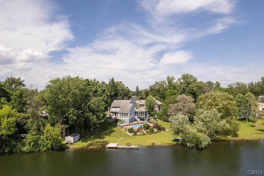 This property boasts 330 feet of water views of the Oswego River on a spacious 1.30-acre lot. With over 2600 square feet of living space, this meticulously maintained home offers three bedrooms, three full bathrooms, and a two-car attached in tandem garage. Step inside to discover a sunlit four-season room, large living room and formal dining room, all overlooking the picturesque water, perfect for relaxing or entertaining guests. Upstairs, there are three bedrooms, two of which are generously sized owner's suites complete with walk-in closets and a convenient second-floor dedicated laundry room.The heart of the home is the gourmet kitchen, featuring luxurious Corian countertops, stainless steel appliances, and a Butler's pantry. From the kitchen, step out onto the enclosed deck and soak in the stunning views of the heated in ground pool and waterfront! This home does NOT REQUIRE flood insurance. Actual square footage (2697) from recent appraisal in attachments. THIS HOME IS ON THE MARKET DUE TO THE SELLER BEING RELOCATED FOR WORK.