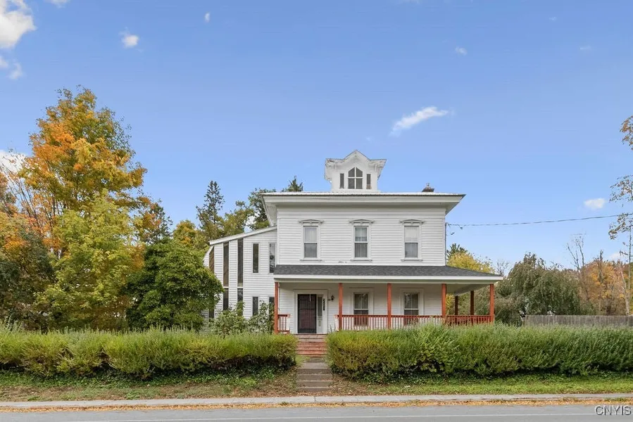 Discover the beauty of this preserved historical home, once known as Tug Hill Lodge, nestled on 1.19 acres. This residence blends timeless charm with modern amenities, offering an ideal setting for family living and entertaining. The first floor features a welcoming bedroom and an oversized living room with an electric fireplace, perfect for cozy gatherings. The elegant dining room boasts hardwood floors, making it an inviting space for large meals. Enjoy the bright sunroom, a serene spot for morning coffee or relaxation. The kitchen is a chef's delight, featuring an island and a walk-in pantry for convenience. Upstairs, five spacious bedrooms provide ample room for family and guests, complemented by two full bathrooms and a half bath. Outdoor living shines with a large side porch, ideal for enjoying the fresh air. Additional highlights include a two-car garage, a shed, a new forced air furnace (2024), and an updated electrical feed. With 2,392 square feet of living space, this charming home offers a unique blend of history and comfort. Seller is selling House As Is - Bedroom roof leak has been repaired.