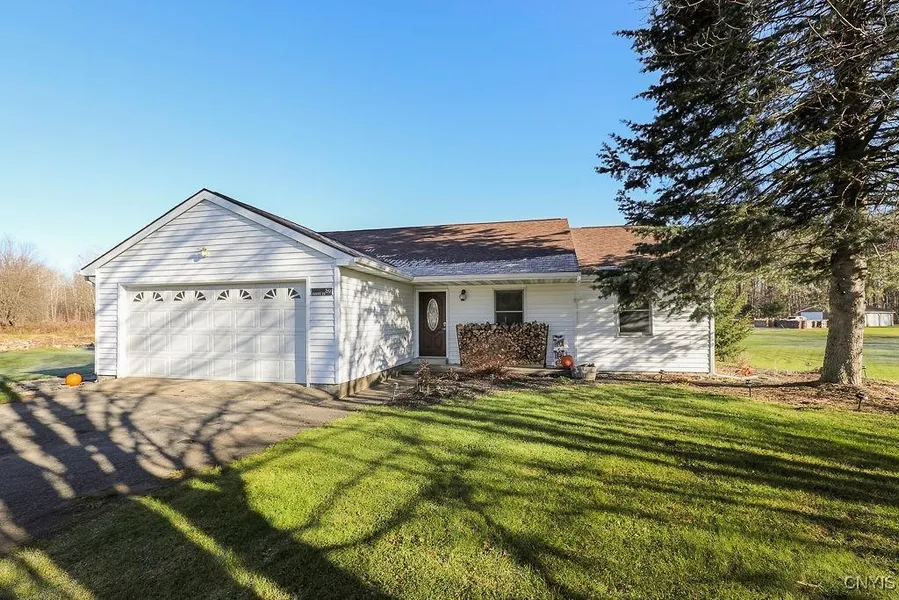 Welcome home to this beautifully maintained one level home located inside the Central Square School District. You will love the spacious entry foyer that spills right into the cozy family room with a wood burning fireplace opening right into the eat in kitchen with hard surface countertops and immaculate appliances. There are Three generously sized bedrooms that include an ensuite. The garage is bright, oversized and clean. The backyard includes a beautiful deck, as well as a hardstone sitting area, firepit and flowing water feature. There is nothing to do at this property other than to move in and call it HOME. This home requires one hour showing notice please.