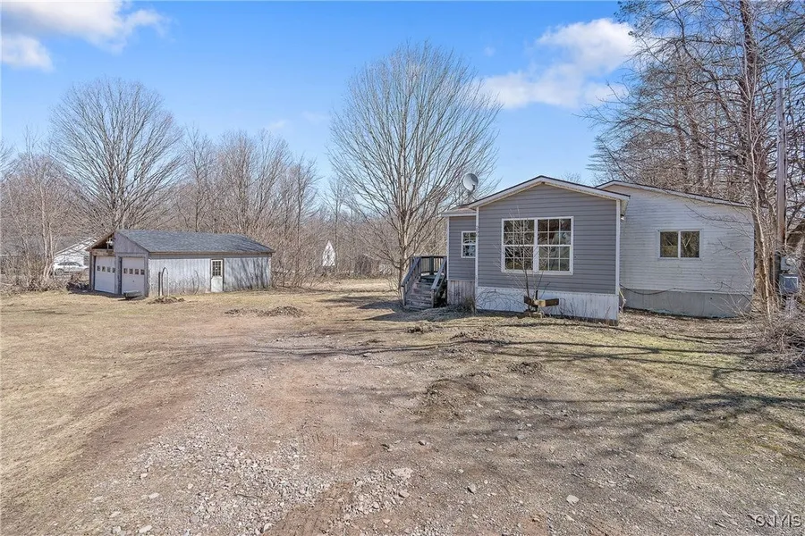 Mobile home for sale located in Hannibal, NY. This is a 1972 70X12 single wide home featuring two total bedrooms and one full bathroom. Situated on 1.38 acres of private land. Entranceway and mud-room combo for convenience. Eat-in country style kitchen with a stainless steel stove and dishwasher included. Formal living space with great natural lighting. Oversized bathroom with washer and dryer hook-up. Large closet for additional storage. Two car detached garage and plenty of driveway parking. Major updates include flooring, bathroom remodel and more! Some finishing touches needed with lots of potential! This is an estate sale. No electric is turned on and water is disconnected. CASH ONLY SALE.