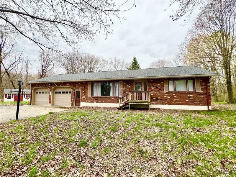 Be prepared to be impressed with this meticulous brick ranch home in Scriba. The house is officially a 2-bed, 1-bath house, but you will see that there are rooms in the partially finished lower level that could easily be used for many purposes and even another area for a future family room or theatre room. You could also add a bathroom or two by adding an ejector pump. The two bedrooms on the main floor are very spacious. The primary bedroom has separate access to the bathroom from the bedroom. There is also a 1st floor laundry. Hardwood floors run throughout most of the main floor living room, bedrooms and hallway. The kitchen is a sight to behold. If you enjoy cooking, you may never leave this custom chef's kitchen. The stainless steel appliances include a 6-burner gas stove, side-by-side refrigerator, dishwasher and range hood/vent. The large farmhouse sink is stunning as it sits in an amazing conversation-starter granite countertop. The living room is warm and welcoming with a fireplace and large stone fascade, mantel and hearth. The garage is an oversized 2-car garage (with some equipment staying with the house). Some new features include: a new room in basement and other basement improvements, new lawn, new furnace with central AC, new hot water heater (with spare hot water heater), and new interior paint in multiple rooms. Outside there is plenty of privacy on this 4+ acre lot with a storage shed. The frontage of this listing is officially listed as 30 feet because there is a 275 ft. drive that brings you down into the main property for privacy. The property is 1295' deep on the east side and once you travel the first 275' it opens up and is then 196' wide for the remainder of the property.