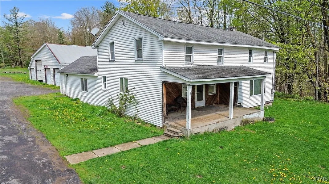 Welcome to County Route 37! This old-style farmhouse sits on just under 10 acres of peaceful, secluded land—offering the perfect setting for your country vision. With a first-floor bedroom, main floor laundry, high ceilings, and an oversized garage with additional sheds, there’s no shortage of potential here. Upstairs features two more bedrooms, and a full basement adds extra space to work with. Please note: this is an estate sale and the home is in need of renovations. It’s being sold as-is and will require work—but for the right buyer, it’s an opportunity to restore a classic farmhouse on a beautiful lot. Bring your vision and tools—this one has potential written all over it!
