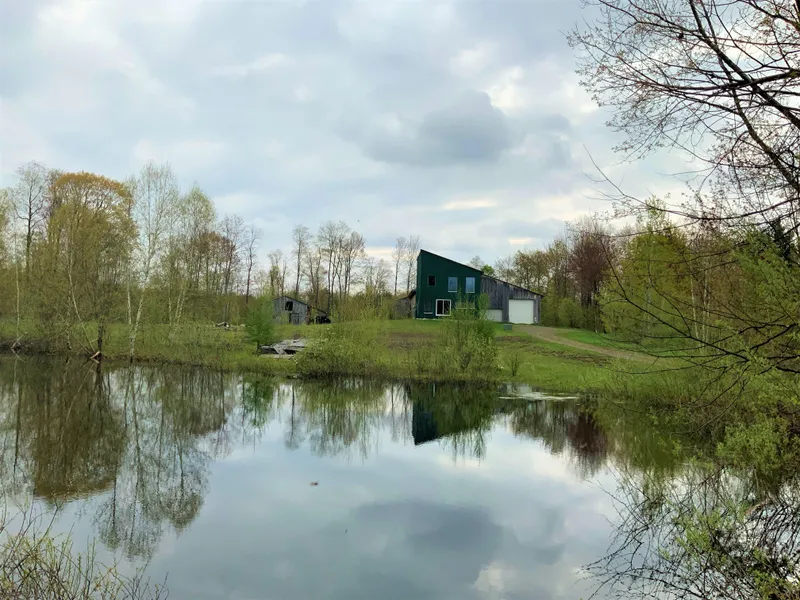 Lodge sits off the road with 1/4 mile long driveway leading around the 2 acre bass pond estimated at 20ft. deep. Underground electric service brought in.