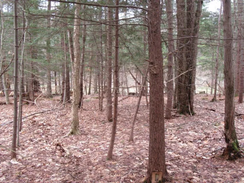 73 surveyed acres of mixed woodlands boasting huge pine trees mixed with hardwoods, ridges, trails and creeks. Loaded with deer, turkey and grouse. Would make a the perfect woodland home site as this parcel is along a quiet, country road and electric is available. Nice clearing off the road allows for great building site!