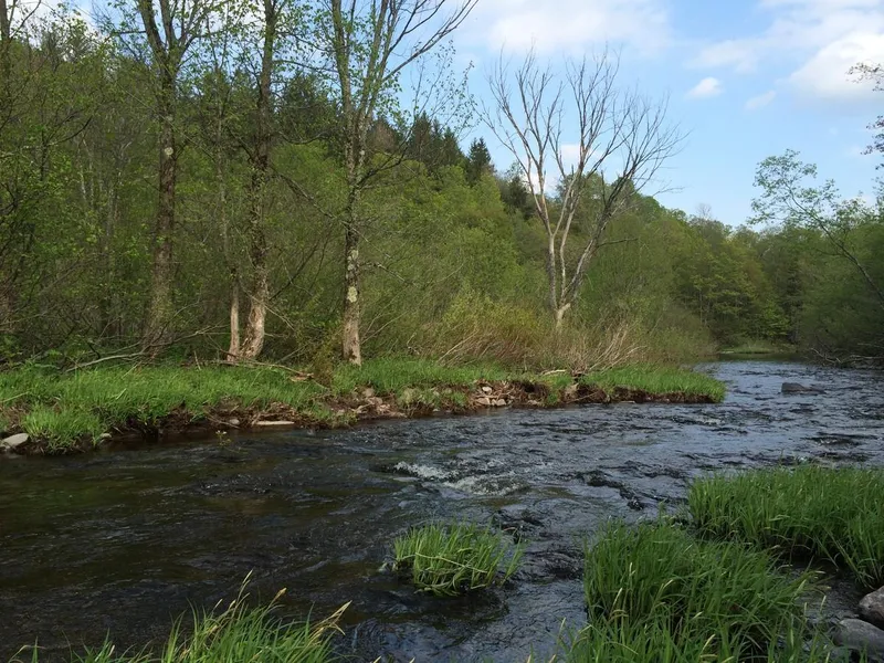 Located on the north branch of the Salmon River, this land includes a state fishing easement along the north branch of the Salmon River so it is perfect for the trout fisherman. Located off a town road, the property offers several nice building sites for an off-grid cabin or RV. (Although this property includes covenants, there are no restrictions on campers or RVs.) Gently rolling terrain is mostly forested with mixed hardwoods and cherry trees. The Salmon River Reservoir is only 5 minutes away, offering a variety of boating, fishing and swimming spots. The area is also well known for its excellent hunting and NYS snowmobile trails are close by. If you enjoy salmon fishing the NYS salmon hatchery is close, as are the Salmon River Falls. At 100' high and over 200' wide, the falls are impressive and very beautiful in autumn. The Salmon River Falls wilderness area includes several multi-us...