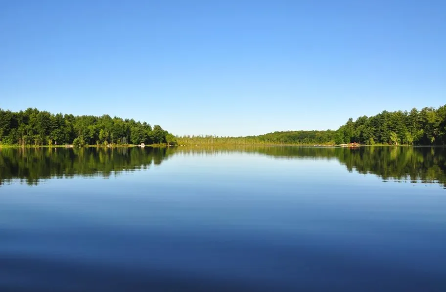 Mature hardwoods forest of cherry, ash and maple. Also massive white pines and hemlock trees for evergreen cover. Ancient stone wall along paved roadfront. Excellent bass fishing with deep water off shoreline. Great duck and geese habitat.