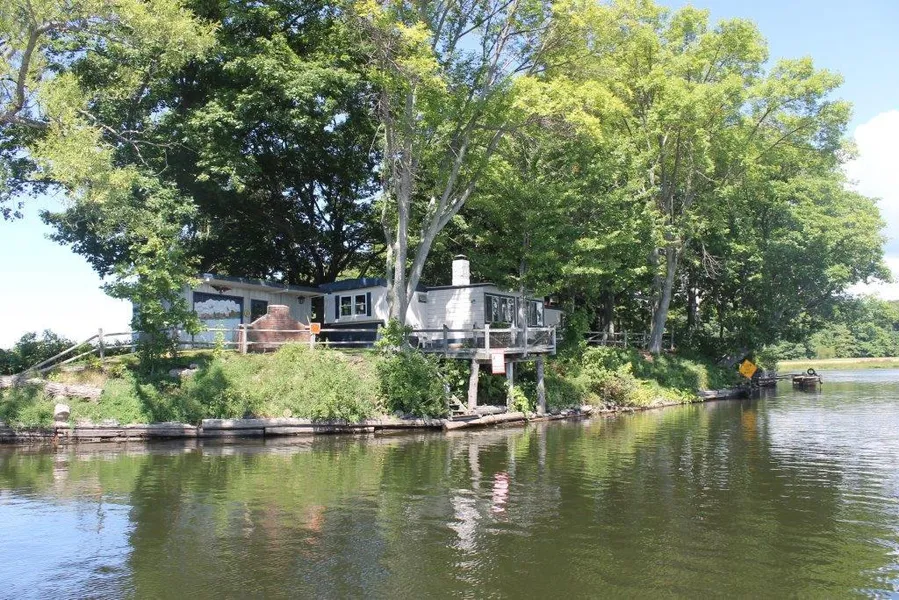 This one of a kind setting has deep water frontage with salmon, steel-head and brown trout, all running right off your front porch. Perfect for a deep water boat to access Lake Ontario, as you are right at the mouth of the Lake. Just minutes away! Enjoy cool, summer breezes and the quiet calm, as you are all by yourself out on the point... surrounded by water. You can fish right off the overhanging platform in one of the deepest holes (19' deep) and catch 20-30 lb. salmon, steel-head and browns off your very own property. Tie up a boat and fish the estuary or go out into Lake Ontario.... This is an unbelievable fishing opportunity. There is also excellent waterfowl hunting off of the point!