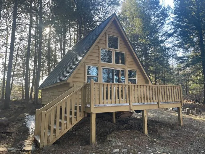 Camp Timberline Enjoy four seasons from this A-frame Timberline cabin - built by our camp crew just three years ago. The unfinished, 18 x 24' cabin has an open downstairs, upstairs loft and an 8' deck facing out over Blue Heron Marsh, home to many birds and wildlife. Very quiet and private, the property is located on a snowmobile trail and enjoys frontage on Beaverdam Brook. Surrounded by cherry, maple and hemlock woods, this beautiful property in Williamstown NY is located on a public road, only 1/2 mile from O'Hara State Forest for hunting, hiking and cross-country skiing. The property has direct access to a major snowmobile trail and is just minutes from the Salmon River Reservoir for boating and fishing. The nearby Salmon River is widely known for its fantastic salmon runs each fall, as well as steelhead fishing and brown trout fisheries. Also within walking distance of the Mad River.