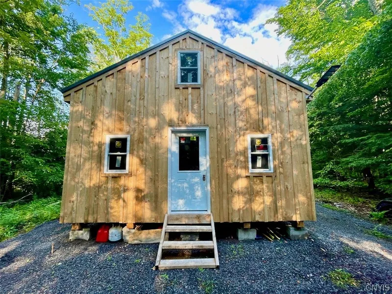1 Mile from Lake Ontario. Off-grid fishing/hunting camp just minutes from world class fishing! Area marinas, and boat launches nearby... This mainly wooded 8-acre parcel has been developed with a 300ft gravel drive into a secluded camp. This structure is ready for your finishing touches -- Pella windows, metal roof and sturdy construction are in place. New built 20 x 30 cabin with 2x6 studs/18X20 Loft, new pad. City water available at top of driveway, National Grid electric available, septic system would need to be installed. NOTE: Some apps/websites have this address mapped wrong, this property is located at 85 Shore Oaks Drive (not E Shore Oaks.) Google the address to see the location.