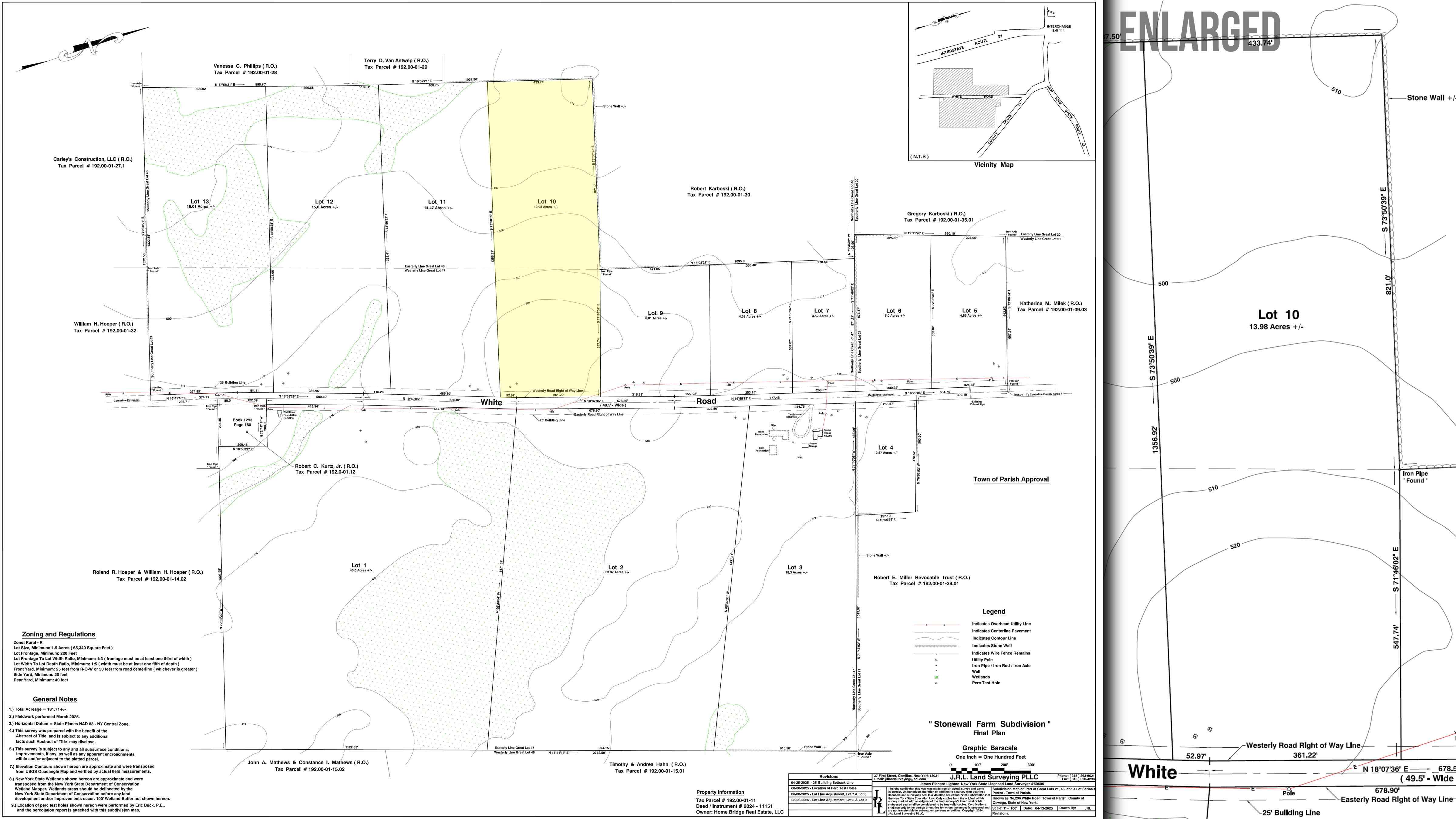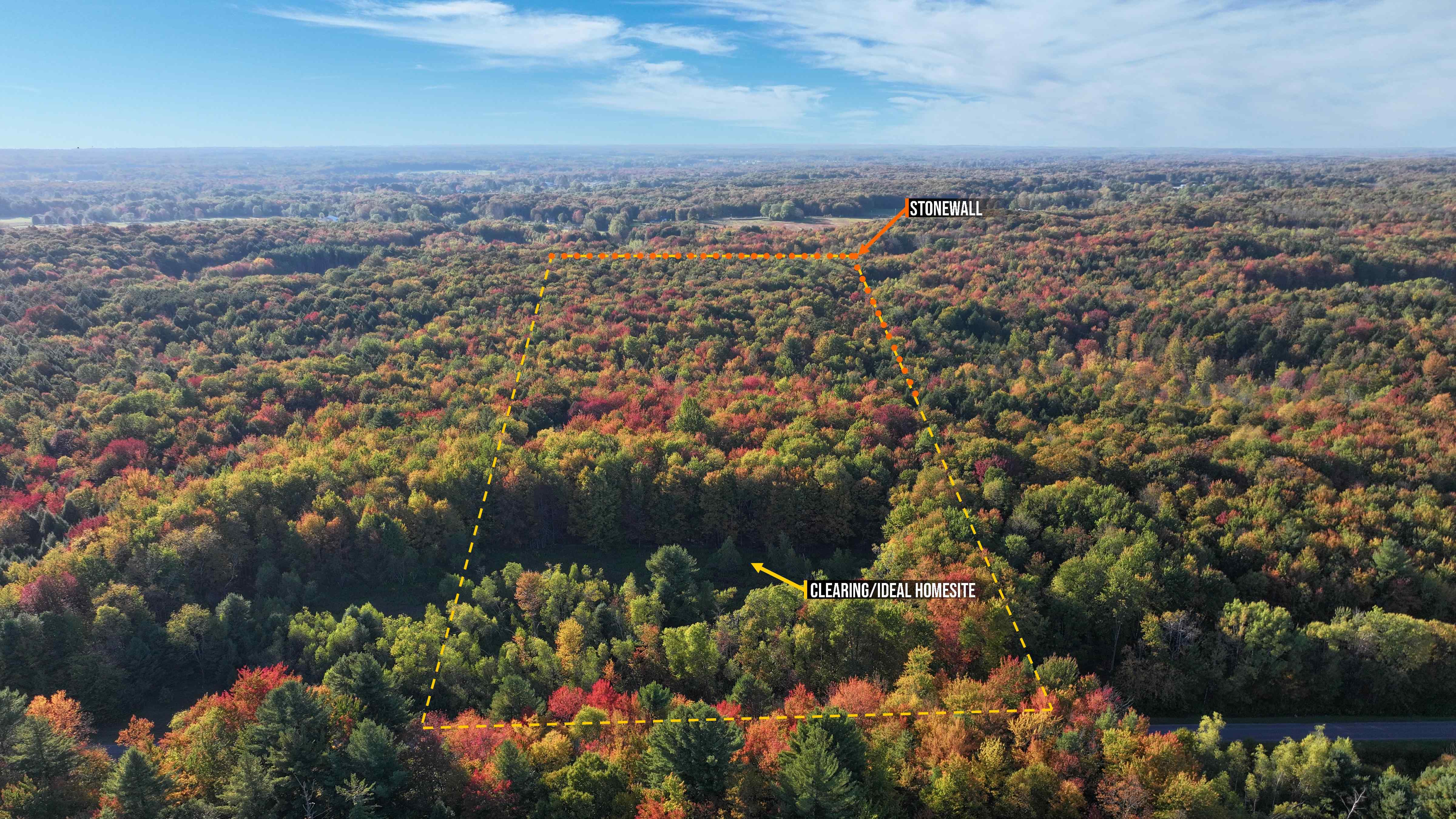 PROPERTY: Welcome to Stonewall Farm! Lot 10: This new and peaceful 13.98 acre property near Parish, in upstate New York, lies just minutes from Lake Ontario’s endless recreational opportunities. This flat, perc-approved lot features a large clearing behind a large timber wall of mature hardwoods and pines along the road, offering a perfect blend of privacy, build readiness, and natural beauty. With 361 feet of paved public road frontage on White Road, access is simple, while a well and septic (perc-approved) can be installed to suit your build. Free from HOAs and restrictive covenants, this property is zoned Rural/Mixed Use—perfectly flexible for residential or recreational living, with mobile/manufactured homes and even some commercial uses allowed. Recently surveyed and free of any floodplain and wetlands encroachments, it’s very buildable and surrounded by a safe, quiet neighborhood. You even have one of the historic stonewalls lining this property’s entire north boundary line and part of the east boundary line. Just 3 minutes from town and within 20 minutes of multiple lakes, waterfalls, state forests, and wildlife areas, this charming location makes for an ideal countryside estate. Owner financing is available too, so grab it today at an unbeatable Acretown price!