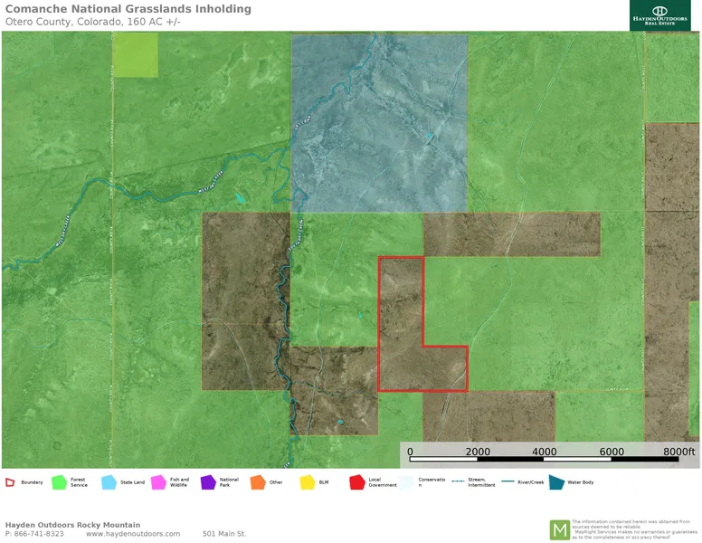 This 160 acres of property sits inside some of the wildest country CO has to offer. While being surrounded by over 440,000 acres of the Comanche National Grasslands, which is operated by the U.S. Forest Service. This property is accessible year round by County Roads. There are many miles of Forest Service roads that are begging to be explored on the Grasslands. The property itself is off the grid.Land The property is primarily made up of native pasture. With a few draws that offer cover for Mule Deer and Pronghorn Antelope. There are two nearby creek drainages on the adjacent public land. Views of the distant Rocky Mountains can be seen throughout the property. There are also many Pinyon covered Canyons nearby, which hold both Plains Elk and Bighorn Sheep.