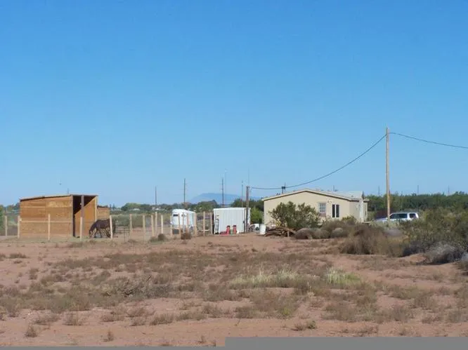This home sits on 10 usable acres and has a horse corral with 3 sided covered shelter, shed for storage and private well. This Town & Country home was built in 1997 and has been updated with a separate laundry room with newer front loading washer & dryer that stay, eat-in kitchen, large open living room &dining area and a split-bedroom layout. It also has a large south-facing patio to enjoy wonderful starlit evenings under the open New Mexico sky! Bring your horses and enjoy this property!