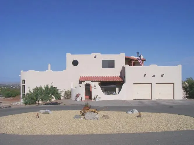 This huge 2 story adobe style home is located in a gated community (privacy!); minutes from downtown Alamogordo. This home is made of steel and adobe and has SO much to offer! It has the master suite upstairs which includes a large master bathroom, walk-in closet sky lights and you can walk out to your private balcony which also has a hot-tub & shower to rinse off before going back into your bedroom - the upstairs also has another bedroom as well as an office. There are 2 bedrooms on the main floor which are connected by a full jack & jill bathroom and each bedroom has a walk-in closet. The main floor has the formal dining room & laundry room with a 3/4 bath included. The 2-car garage has everything including an oil-changing pit in the floor but covered so you can use it everyday as well. Downstairs has a huge living room with corner fireplace & eat-in kitchen - both have beautiful...