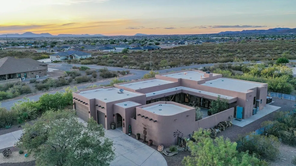 Resort-Style Living in a Stunning Southwest Retreat Step into your own private resort with this exceptional Southwest-style home, offering over 3,500 square feet of luxurious living space. Designed with both comfort and sophistication in mind, this property showcases meticulous craftsmanship and high-end finishes throughout. At the heart of the home is a massive great room, where a floor-to-ceiling stacked stone fireplace sets the tone for cozy evenings and impressive entertaining. The ultra-chef s kitchen is a dream come true, featuring rich granite countertops, custom cabinetry, a professional-grade Wolf 6-burner gas stove, and a built-in Sub-Zero refrigerator and freezer. Whether you prefer casual meals in the cozy breakfast nook or more formal gatherings in the dining area, this home accommodates both with ease. A conveniently located powder room adds to guest comfort. The split floor plan ensures privacy, with the expansive primary suite serving as a true retreat. This serene space includes a kiva-style fireplace, a relaxing sitting area, dual walk-in closets, and a spa-inspired en-suite bathroom with dual vanities, a copper soaking tub, and an oversized rain shower. Bedrooms two and three are generously sized and share a stylish Jack-and-Jill bathroom. Additional amenities include a large laundry area with built-in cabinetry and a butler s pantry-style sink, as well as a spacious attached 2-car garage and a separate attached 1-car garage. One of the home s most impressive features is its seamless connection to the outdoors. Every room offers direct access to the spectacular central courtyard an entertainer s paradise with a built-in firepit, enclosed outdoor kitchen, and convenient half bath. Off the great room, the tastefully fenced side yard includes a covered patio and a hot tub, perfect for unwinding beneath the desert sky. This home is more than a place to live it s a lifestyle. Come experience resort-style living every day. Take a look at the 3D tour and call today to see this one of kind home in person.