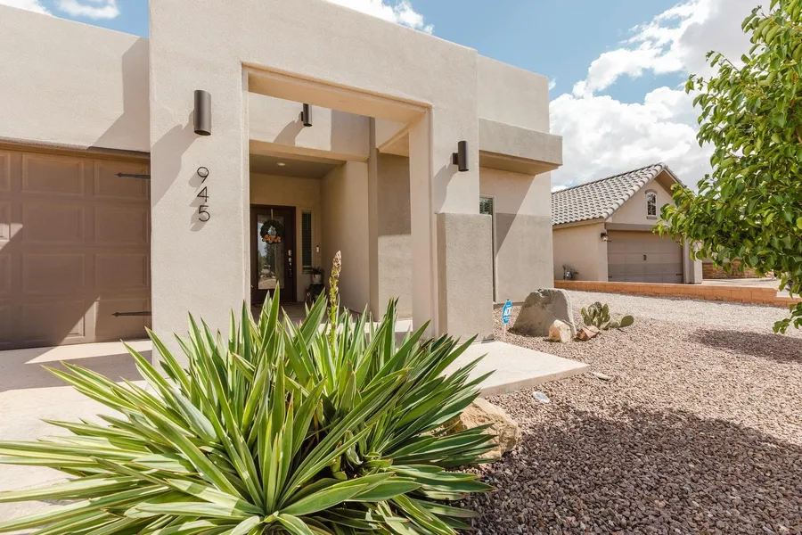 Welcome to 945 Datura Drive! This beautifully maintained home offers the perfect blend of comfort, style, and function in a desirable Alamogordo neighborhood. Featuring4 bedrooms, 2 full baths, and a spacious 2-car garage, this property is designed to meet all your needs. Step inside to find an inviting open-concept living area with abundant natural light, a well-appointed kitchen with plenty of counter space, and a cozy dining area ideal for family meals or entertaining. The split floor plan provides privacy, with the primary suite boasting a large walk-in closet and private bath. Enjoy outdoor living in the landscaped backyard with a covered patio, perfect for relaxing evenings, BBQs, or morning coffee with mountain views. Beautiful large back yard complimented by artificial grass and a home grown garden area! low-maintenance front yard adds convenience while maintaining curb appeal. With proximity to schools, shopping, and local amenities, this home offers everyday convenience in a peaceful setting. Don’t miss the opportunity to make 945 Datura Drive your new home — schedule your showing today!