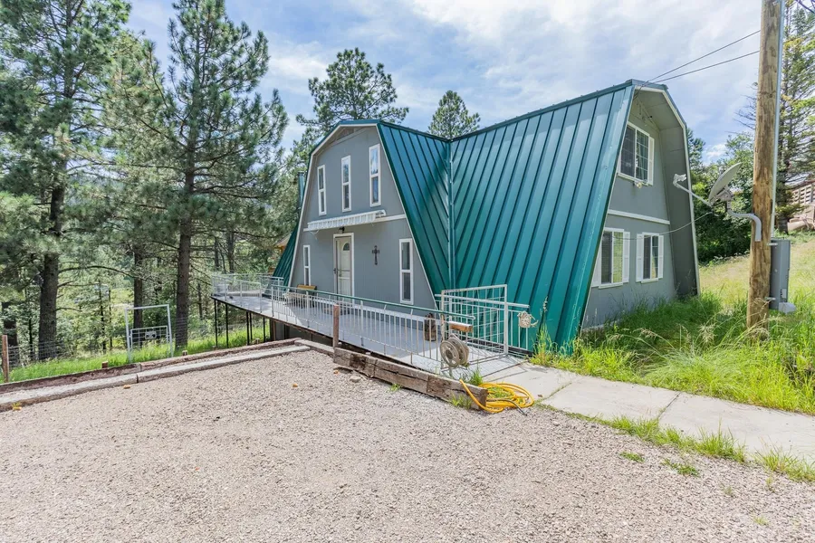 Come up to the mountains and enjoy the amazing mountain air and cooler temps? This Modified A-Frame has been recently remodeled with laminate wood flooring throughout, newer metal roof in the last few years, kitchen cabinets and counter tops. This home is the perfect get-a-way spot or long term living spot for you! Home features 3 Bedrooms and 2 Baths, single level entry to home's main floor, which features an open living room and dining area, kitchen, laundry area, bedroom and a bath. The second floor features the large primary bedroom with extra sitting space for those afternoon relaxation days or office space, a third bedroom and shared full bath. Come sit out on the large covered deck and enjoy those afternoon rains or let the sunshine down on you as you enjoy the canyon views! There is a pellet stove in the living room area for those chilly fall days and winter nights as you watch the tranquility of the falling snow. Schedule your viewing today and check out the 3D virtual tour *** Seller is offering Owner Financing with negotiable terms ***