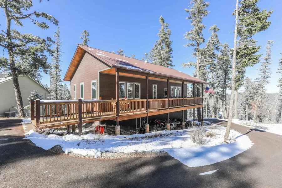 Nestled in the picturesque village of Cloudcroft, this 2020-built custom home sits on approximately 0.5 acres of mature trees, and plenty of wildlife. Property is just steps from the Lincoln National Forest! A wrap-around, paved driveway provides easy access to a spacious garage and a convenient ground-level entry to the main living areas. A beautifully covered deck extends your entertaining space outdoors, perfect for cool mountain summers and snowy winters. Step into the open-concept living and kitchen area with stunning vaulted wood ceilings that elevate the sense of space. The modern kitchen has ample counter space, quality appliances, and thoughtful layout for easy cooking and entertaining. The main floor also features a laundry area and a convenient half bath for guests, and also a generous primary suite with tranquil, retreat-like ambiance. The primary suite has a large en-suite...
