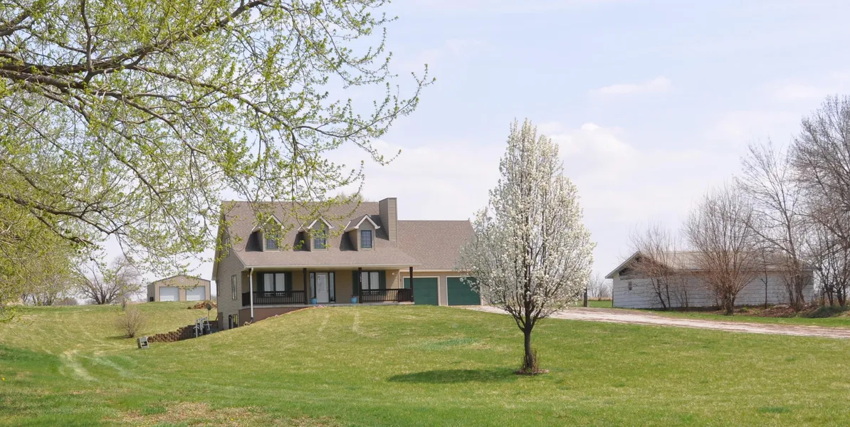 Acreage adjacent to city limits is within your reach!sitting on 2.27 acres, this 1 1/2 story home has 4BR/3BA and a open floor plan with over 2000 sq ft. . Living room with vaulted ceilings & stone fireplace, country kitchen with beautiful custom cabinets, master suite with large master bath & walk in closet and finished basement has a wonderful family room, built in bar, & exercise room. Outside amenities include large deck & patio and the 30 x 40 shop wired for 220 volt service is the ideal Man Cave.