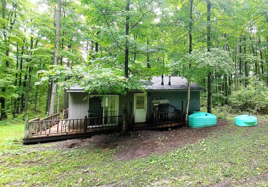 Off the grid living on 10 beautifully wooded acres. This perfect hunting camp is 8 miles northeast of Gaylord and was built in 2001 . Home has 2 bedrooms and a 3/4 bath. Electric is all wired in run and powered by a portable generator. Home has a dry well for septic and 1,000 gallon plastic water tank hooked up to plumbing. Set up with a lp hot water on demand heater . Wood stove in living room. Cabin is partially furnished. Call today!!!
