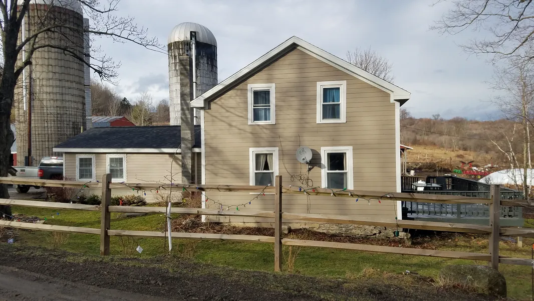 Otsego County Dairy Farm. 43 acres, currently all in pasture, with close to 400 additional acres tillable to rent and rent reasonable. Approx less than $10 per acre. Good 36x220.working 80 stall single story tie stall barn. Decent sized mangers. Stalls are in good shape with matts. Tunnel ventilation. Patz barn cleaner. Barn has a 40ft addition on end that does not have stalls yet. Could be used for calving pens, young stock, or additional stalls. Also a side addition 30x30 used for calf pens..2 inch pipeline, 1500 gallon bulk tank, 6 milking units with Boumatic take offs. 2 concrete upright Madison silos. New 50x72 loose housing barn. Full concrete floor. 12ft feed alley. Lock ups, water. Good tall barn that can be used for stock or an awesome hay barn. It has many different uses. 16ft high ceilings. Three sided 40x80 machinery building for equipment storage. 32x40 sho...