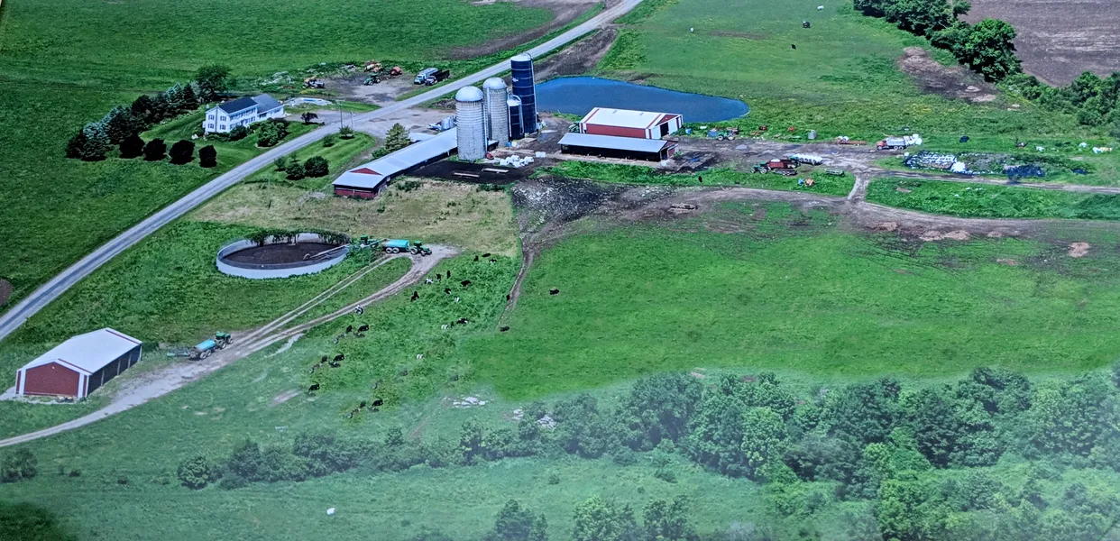 This broozing dairy farm with fenced in pasture showcases a 32 x 100 heifer dry cow barn that is holding 75 head, 105 tie stalls, 2" pipeline, 1000 gallon tank zero - variable speed vacuum, a 750,000 gallon manure storage tank, (2) 55 x 75 Martin dirt pole-barns, (2) drilled wells with good water, a water softener for the milk-house & home, tunnel ventilation, (2) ventimatics, and Patz barn cleaner. 150 acres is corn tillable, 200 acres are alfalfa/grass pasture, 80 acres of woods including a building, and (4) silos: 20 x 60 Madison concrete; 24 x 60 Harder Concrete; 20 x 80 Harvestore & a 20 x 40 Harvestore. This property has good grazing land. The home is a very nice 2-story 3 bedroom, 2 bath Colonial with attached garage